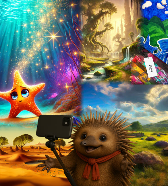 We create original artworks, unique collectibles, and distinctive designs — blending creativity with storytelling and a dash of fun. From custom projects and quirky characters like Pickles the Echidna to our signature art collections, everything we make is crafted with imagination and heart.