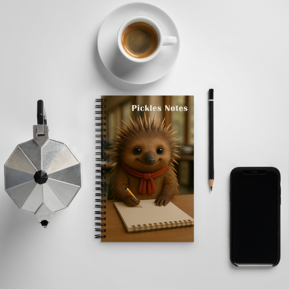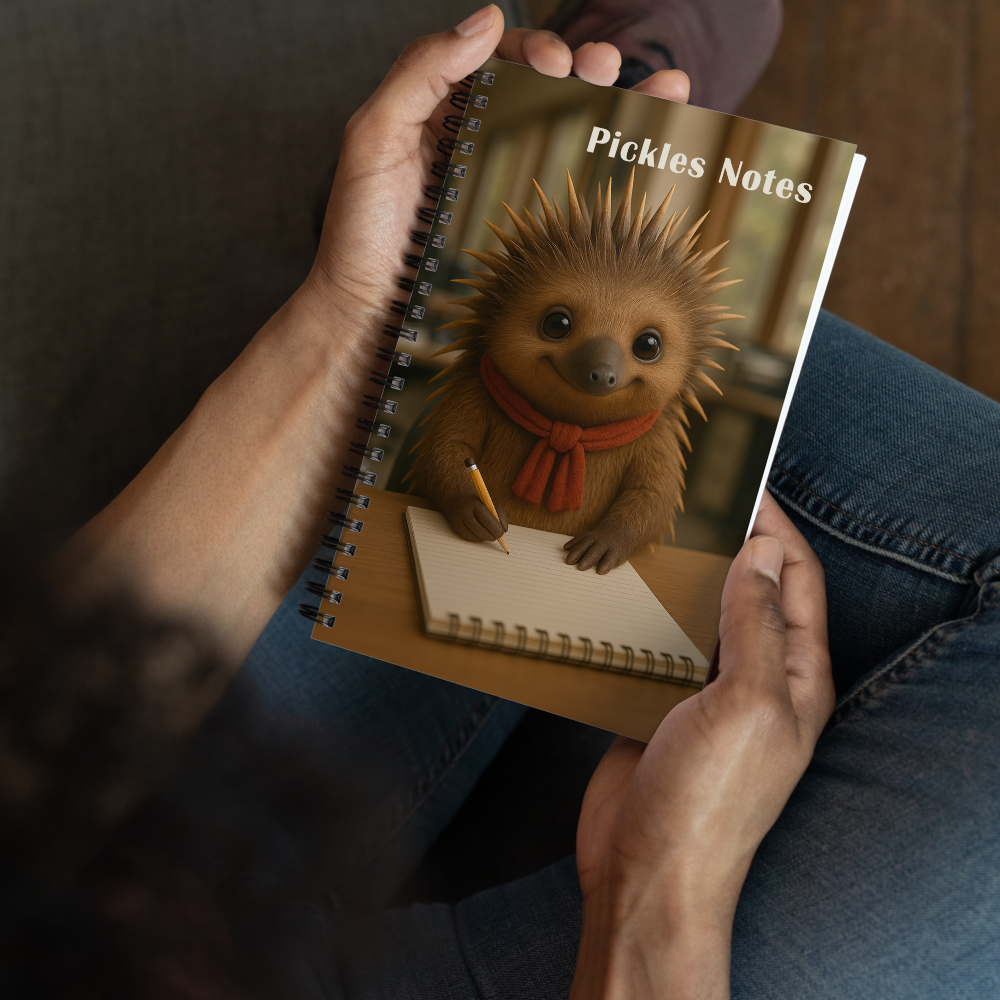 Some thoughts deserve their own little space — whether it's a random idea, a sketch, a Hug Club story, or just a doodle of Pickles. The Pickles Notes spiral notebook is your cosy companion for jotting, scribbling, or planning your next big adventure.